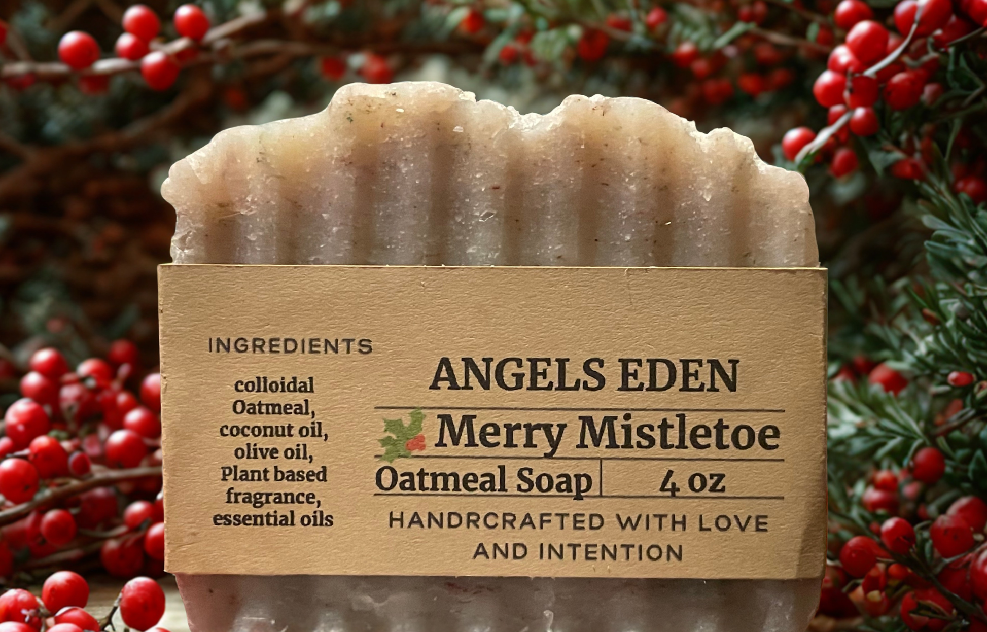 Indulge in the festive scent of Christmas with our Merry Mistletoe Soap. Made with vegan oatmeal and infused with pine needles, this soap will leave your skin feeling nourished and smelling like a winter wonderland. The perfect addition to your holiday self-care routine.